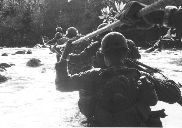 Just like the Golden Gate: ; Well, not exactly, but this bridge serves a similar purpose by helping these Famous Fighting Fourth Division soldiers ford a river in the Central Highlands. After all, Vietnam isn't exactly California anyway!