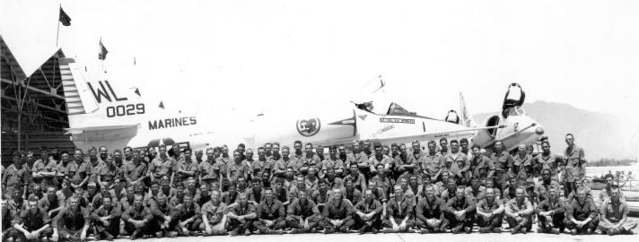 Marine Attack Squadron 311, Marine Air Group 12, Chub Lai, I Corps, Vietnam From left: Lt. Col. ?, Capt. Lathrop, Capt. McGraw, Maj. Pridgen, Maj. Wardlaw, Capt. Lent, Cwd Lathroy, Maj. ?, Lt. Col. McCrary, Lt. Col. Overturf, Maj. McGeehan, Maj. Messerschmidt, Capt. Pritchard, Capt. Sanlin, Capt. ?, Cwd. ?, Cwd. ?, Maj. Carr, Maj. Lewis, Cwd. Drath. Not pictured: Maj. Herber, Capt. Barger, ...