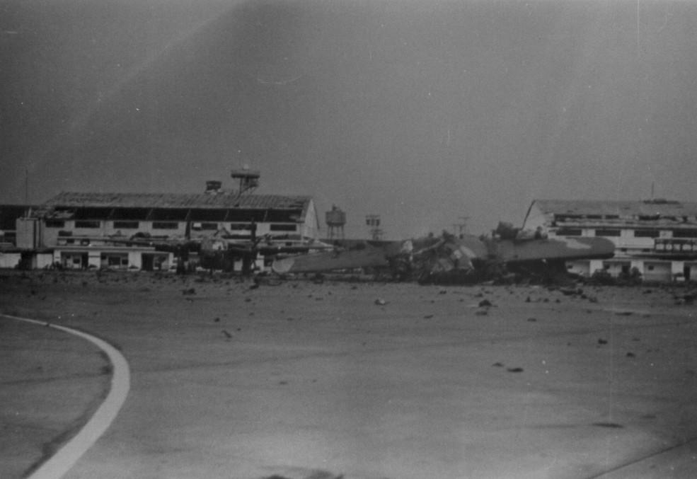 AC 11g aircraft destroyed and damaged during A37 attack on the 28th April 1975 at 815H, Air Ops Building, Tau Sm Nhul Phot by Chuy of Intelligence Vietnamese Air Force
