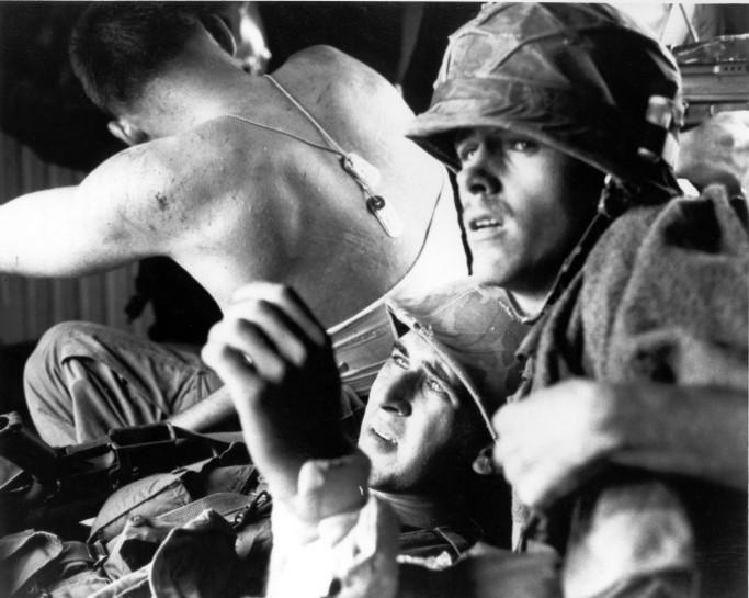 - (022) The Face of War- Corporal Larry R. Miklos, center, and an unidentified corpsman look in horror as an enemy machine gun fires at the medevac helicopter in which he is riding. Miklos, an artillery forward observer, was wounded during an enemy ambush while on a search and destroy mission south o... (open complete record)